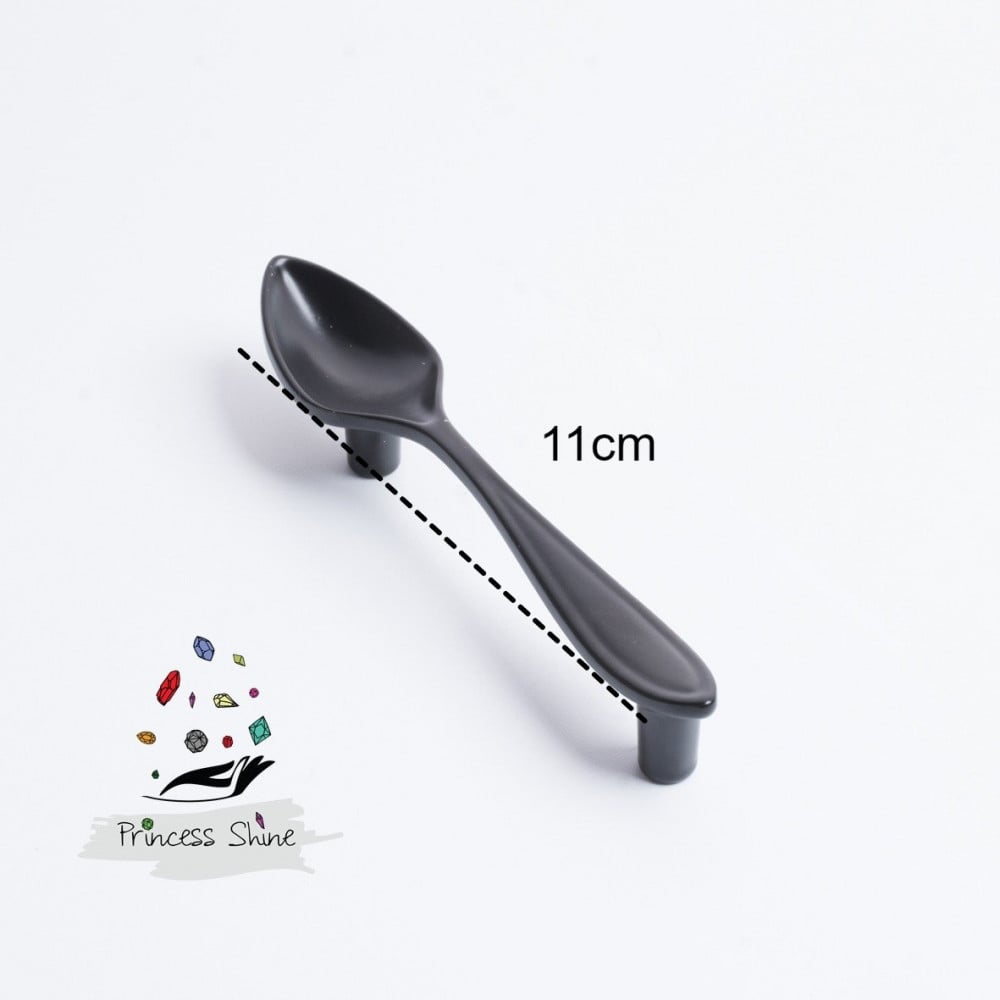 مقبض بشكل ملعقة لون ( أسود ) - قطعتينالمواد : فولاذ.اللون : أسود .مرفق مع المنتج مسامير التثبيت.ملاحظة : المنتج في الصورة ربما أكبر أو أصغر من الواقع ، يرجى التحقق من المقاسات في الصور.